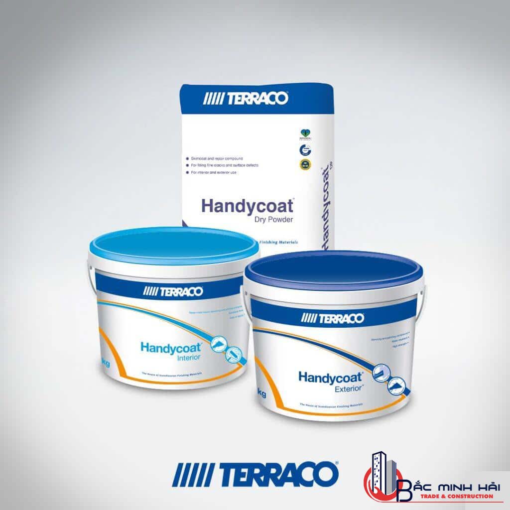 Bột trét ngoại thất Terraco Handycoat là Mastic / Putty sử dụng ngay cho hầu hết các bề mặt xây dựng, bao gồm cả gỗ, tạo một mặt phẳng chất lượng cao, thích hợp cho công việc sơn phủ kế tiếp.